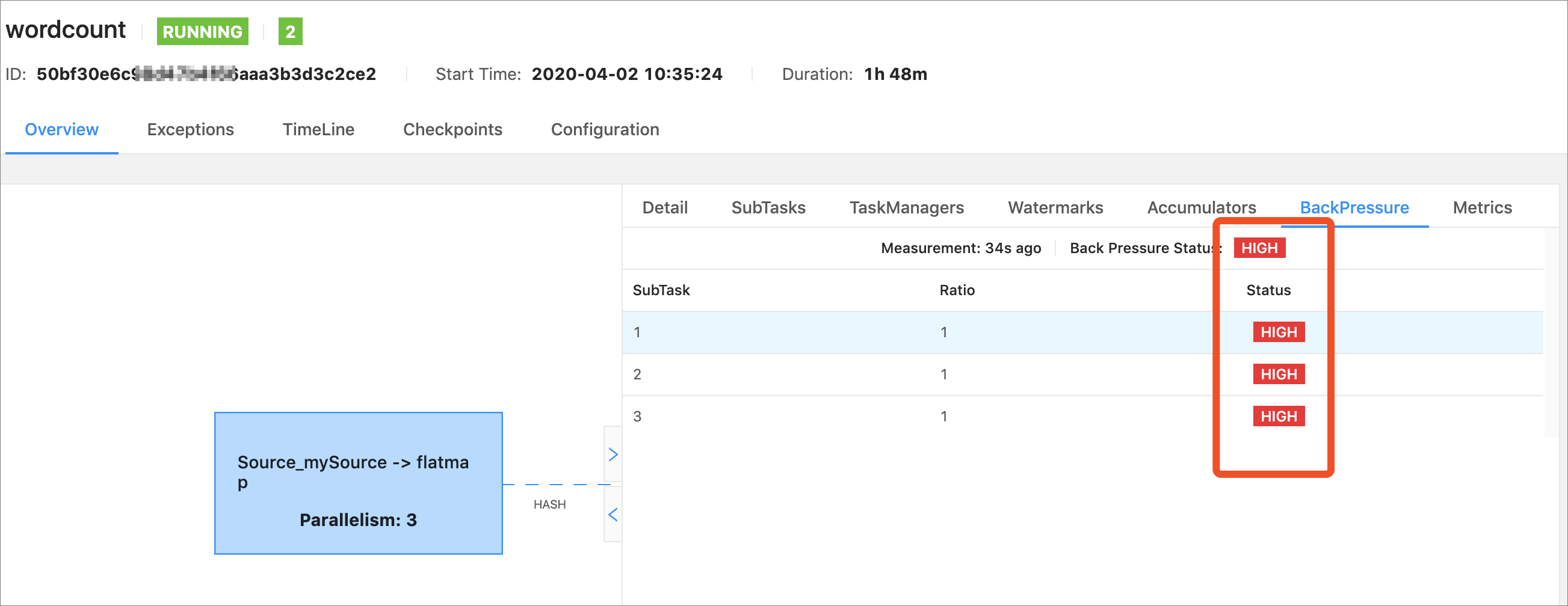 | HIGH | 红色 | 严重反压,outPoolUsage > 50% |